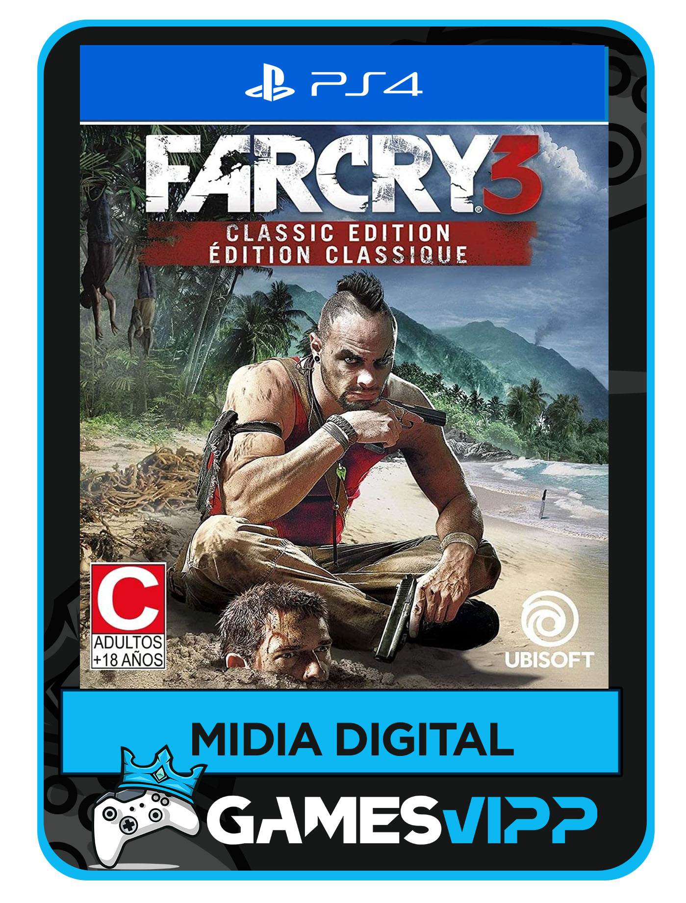 Experimente novamente Far Cry 3 Classic Edition. Crie sua própria aventura na ilha do perigo e da descoberta do mundo aberto para um jogador enquanto se aventura pelo lado sombrio da humanidade.