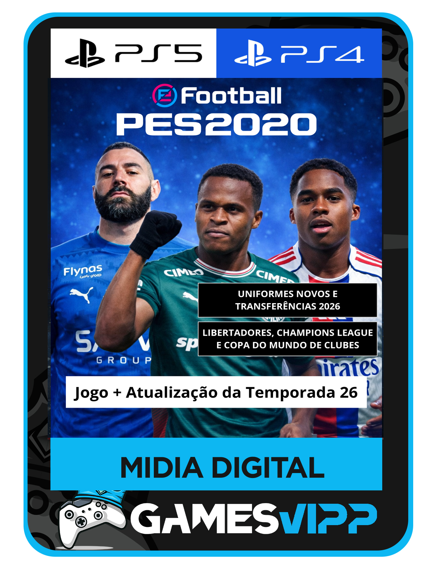 Ideal para quem quer jogar PES 2020 atualizado no PS4 ou PS5 com máximo realismo ⚽